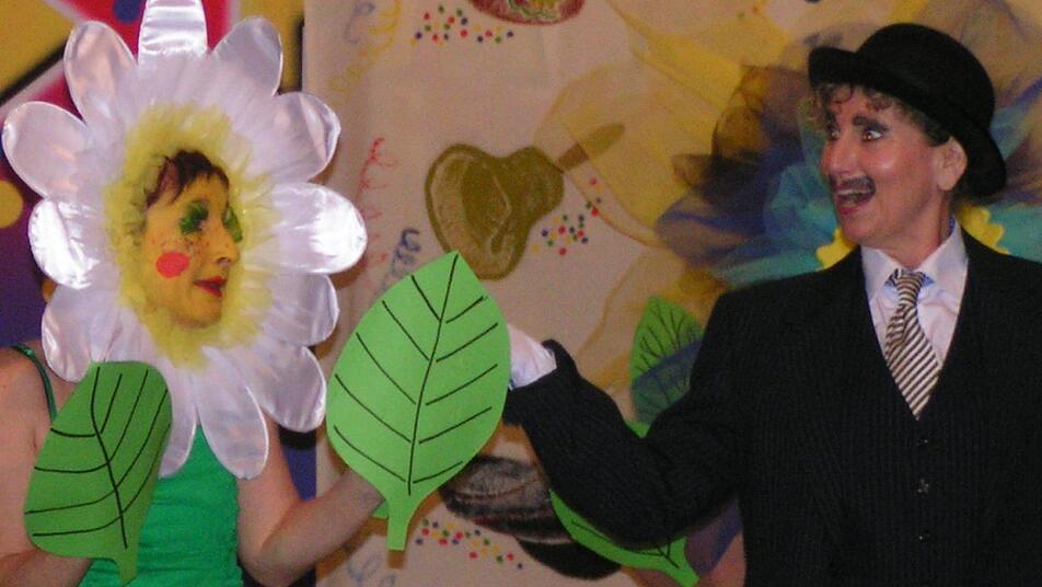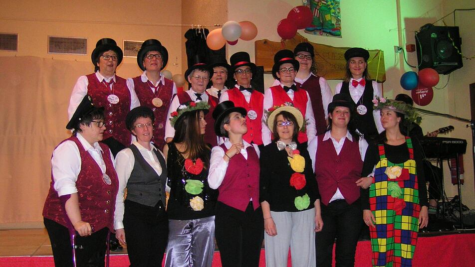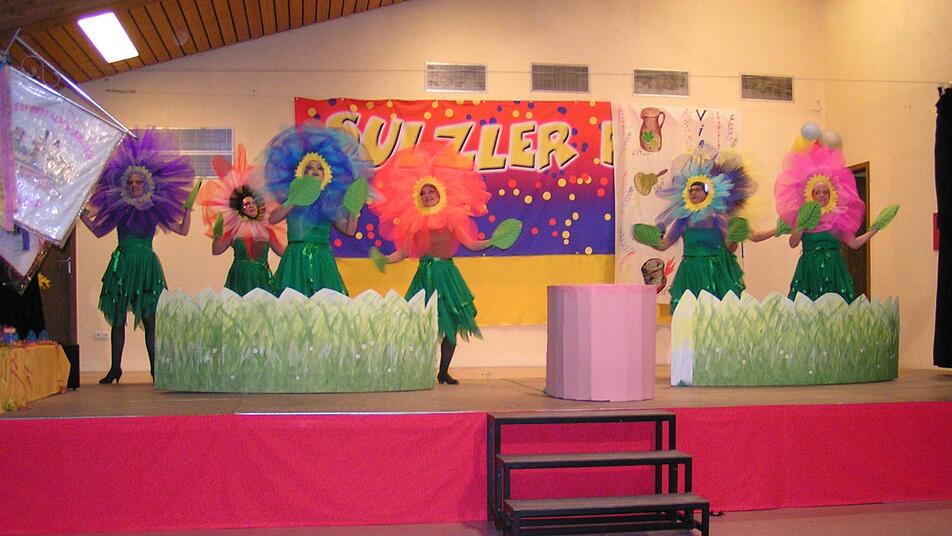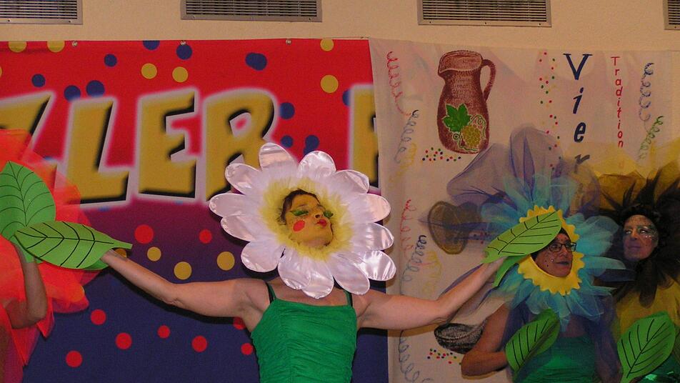 Nun war wieder das Publikum an der Reihe und schwang das Tanzbein bis zum Auftritt der Akteure von der Hohen Straße. Es war ein Garten zu sehen, auf dem plötzlich wunderschöne Blumen wuchsen, eine Biene summte und ein Rosenkavalier (Andrea Ostheimer) zur Melodie "Danke mit roten Rosen" wandelte. Plötzlich kam ein Unwetter. Als Susanne Müller als Gärtnerin Blumen für die Kirche suchte, musste sie bis nach Euerdorf laufen.