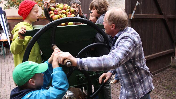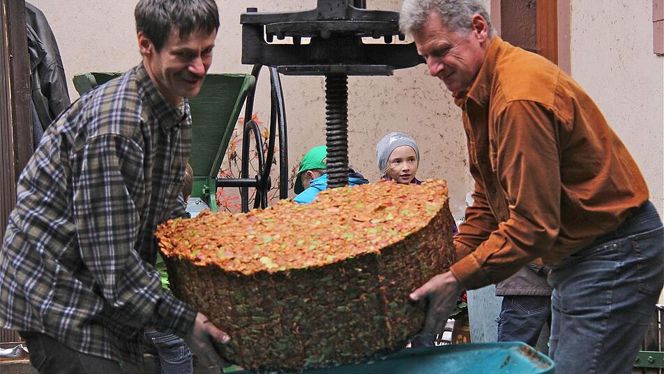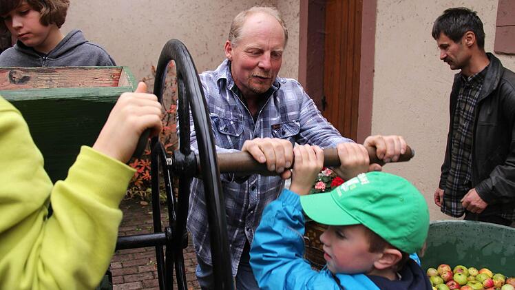 Etliche Besucher haben Vorratsbehälter mitgebracht. Der darin abgefüllte Apfelsaft gärt im Keller nach dem Stadium des Federweißen zum Most. "Apfelwein aus eigener Ernte war früher ein preiswertes Getränk für die Landwirte gewesen", erinnert sich Ziegert. Denn den teuren Wein aus den Hammelburger Trauben habe sich früher nicht jeder sparsame Windheimer leisten wollen. Fünf oder sechs Hektoliter Most im Keller seien üblich gewesen. "Eine solche Vorratshaltung wird es heutzutage in dieser Größenordnung nicht mehr geben", vermutet er.