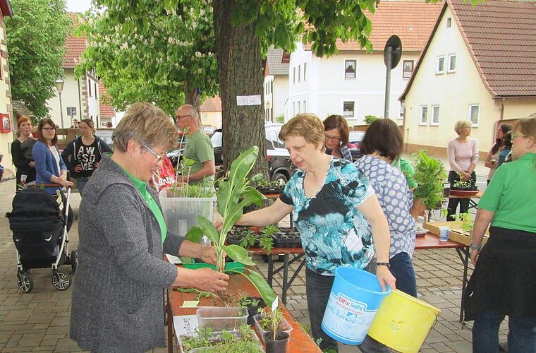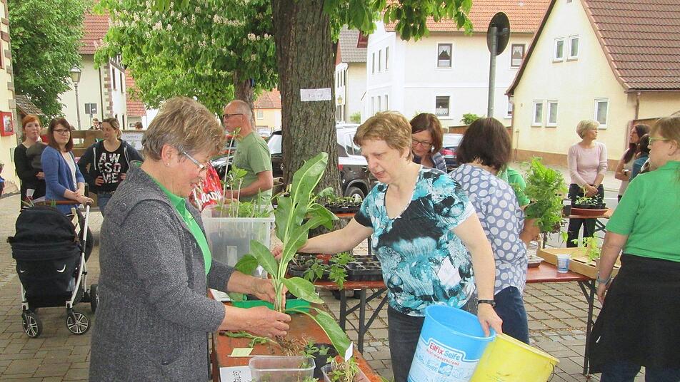 Die reichlich vorhandenen Blumenstauden nennt die Vorsitzende "ideal für Leute, die einen Garten anlegen wollen". Für sich selbst hat sie in der Vorwoche einen "Baumspinat" in Wartmannsroth ergattert, der bis zu zwei Meter hoch wächst. "Ich möchte ausprobieren, wie der Spinat vom Strauch schmeckt", bekennt Schipper-Telger, die "die Tauschbörse auf jeden Fall weiter betreiben will". Dabei - wie bei der Hammelburger Börse - ist auch Claudia Körber aus Bad Brückenau, die verschiedene Sorten selbstgewonnener Blumensamen anbietet. Ganz andere Genussartikel fanden ebenfalls guten Zuspruch - die Wildschwein-Bratwürste und der selbstgebackene Kuchen.