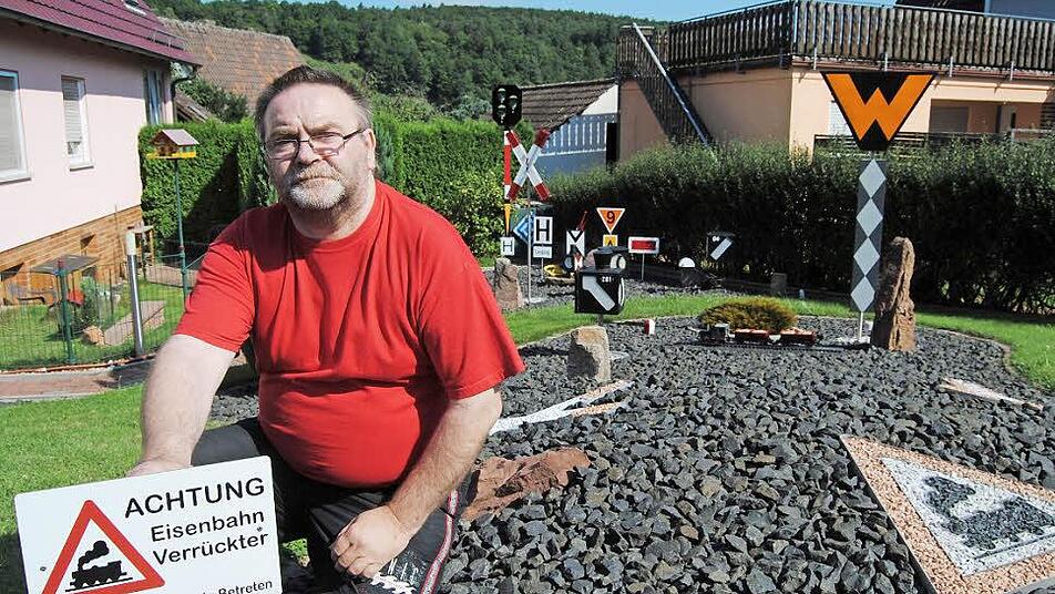 Der Werbeanlagenbauer Berthold Appel setzt ganz deutlich Zeichen rund ums Thema Eisenbahn - und zwar im Garten seiner Mutter.