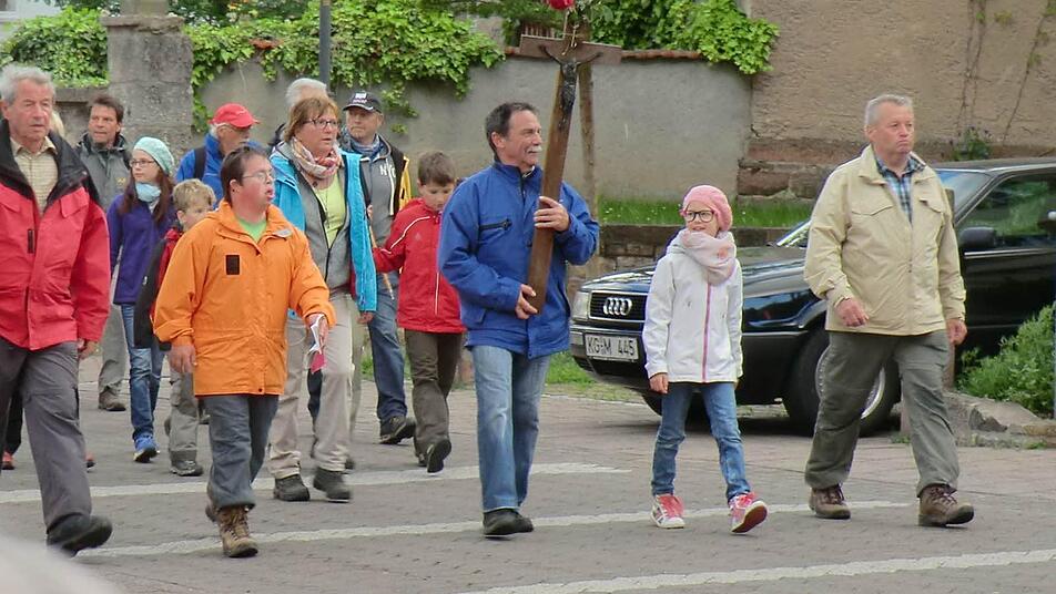 Rund 200 Wallfahrer pilgerten am Wochenende von Oberthulba zum Kreuzberg.