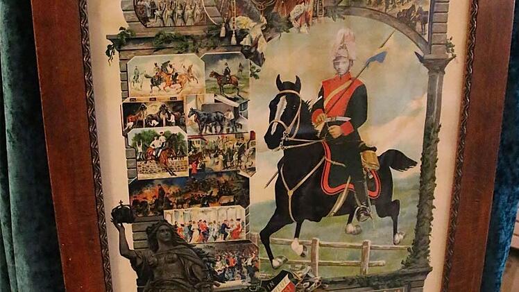 Weiterhin ist eine Puppe in originaler Soldatenuniform und mit voller Kriegsausrüstung zu sehen. Das Gewehr "K98" und zugehörige Bajonette versetzen den Betrachter in die Zeit von vor 100 Jahren. Damals wurden schon die Kinder zum Hurra-Patriotismus ermutigt und der Krieg verharmlost: "Mein Liebchen, mach´ mir das Herz nicht schwer - ich muss doch nun einmal zum Militär", wird auf einer Karte einem Buben im Vorschulalter in den Mund gelegt. Der trägt bei seinem Abschied von einem kleinen Mädchen Gewehr, Bajonett und Pickelhelm.