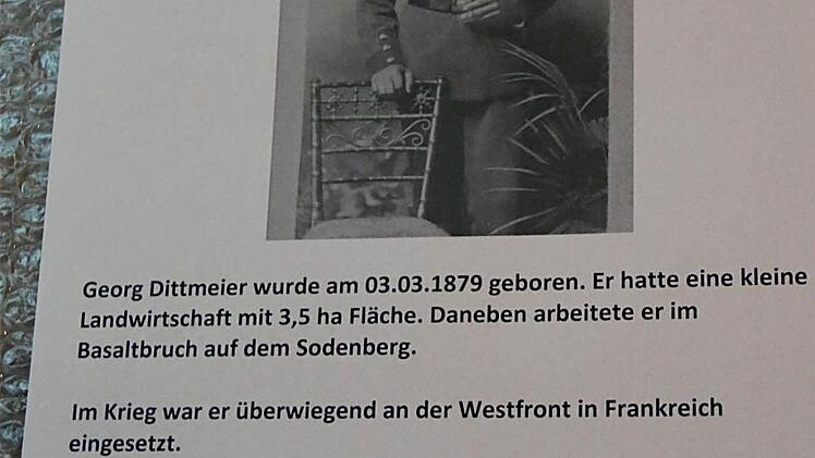 Die Ausstellung "100 Jahre Erster Weltkrieg 1914 bis 1918 - gegen das Vergessen" ist im Rathaus in Wartmannsroth zu sehen. Die "Urkatastrophe des 20. Jahrhunderts" hat auch in den Dörfern der Gemeinde ihre Spuren hinterlassen.