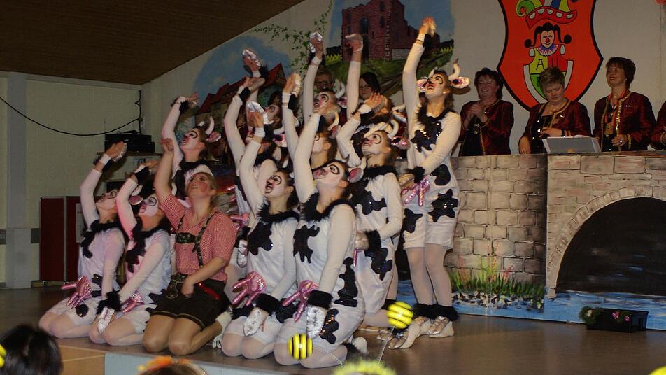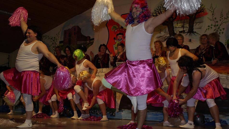 Nur für Frauen ist die Faschingssitzung in Aura gedacht, doch ohne Männerballett geht es nicht.