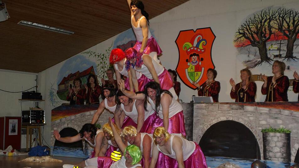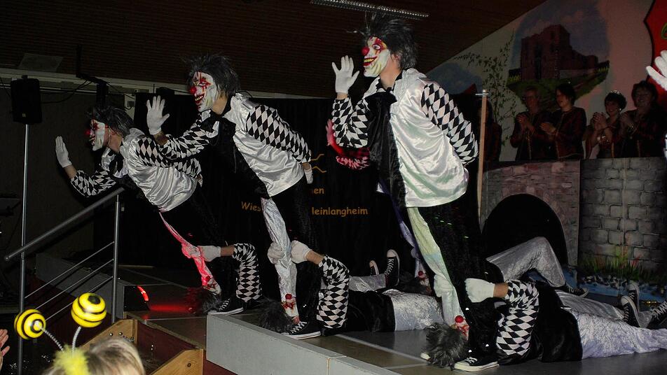 Dass es ganz ohne Männer doch nicht geht, zeigte das Programm in der Auraer Festhalle, in dem fünf Männerballetts - zur Freude der vielen, maskierten Ladies - auftraten. Dabei schossen die "Gentlemen" aus Wiesentheid-Kleinlangheim mit ihrer akrobatischen Super-Show als Clowns unbestritten den Vogel ab - eine Vorstellung der Superklasse.