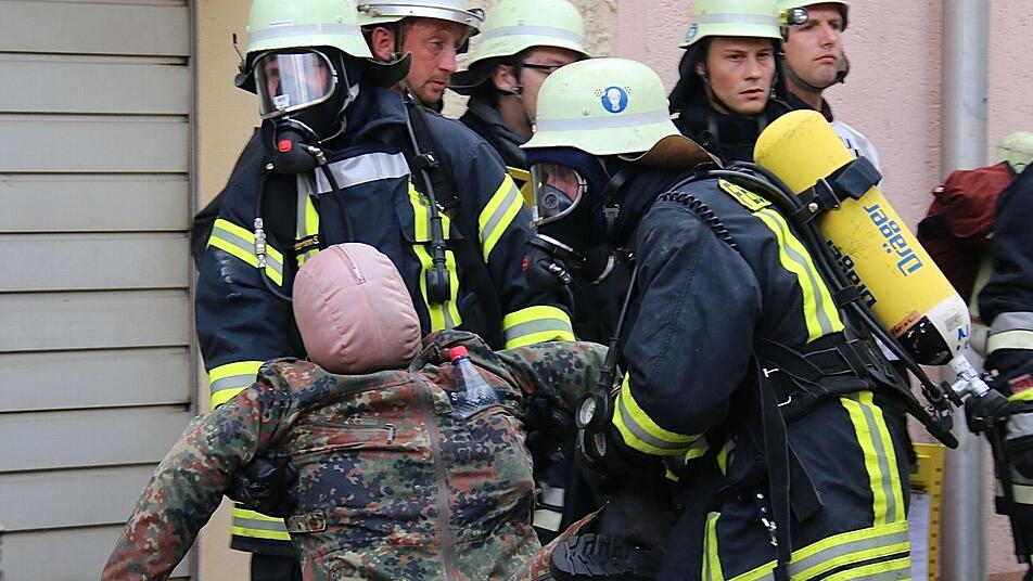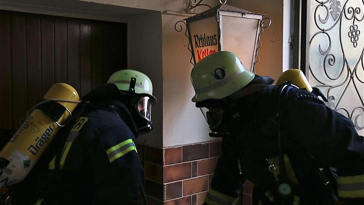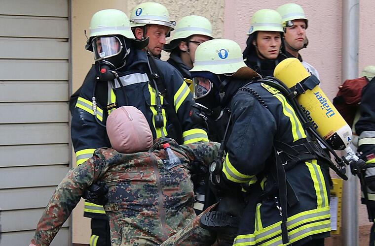 Sechs Personen, hierfür wurden Puppen verwendet, konnten aus dem Reblaus-Keller gerettet werden. Die siebte Person, mittlerweile bewusstlos, war über eine Trage aus dem Obergeschoss zu retten.