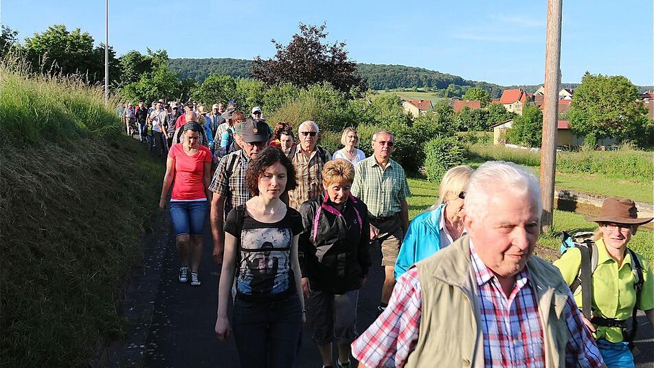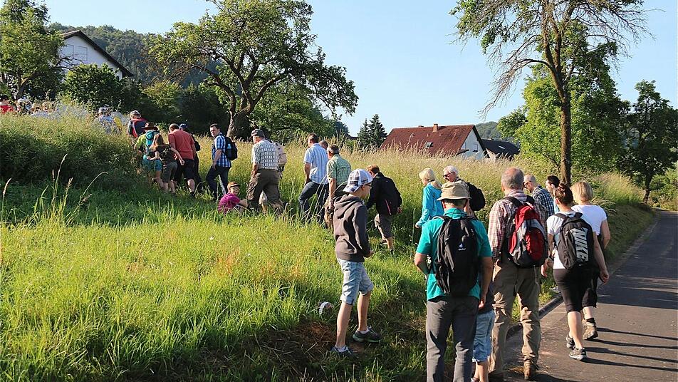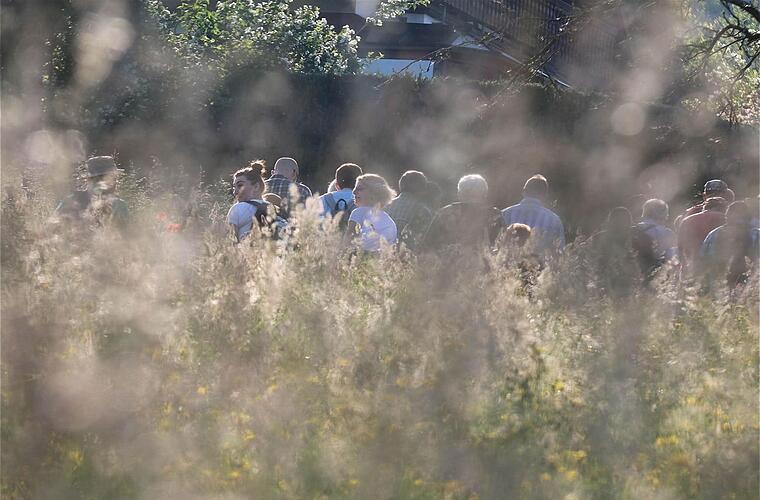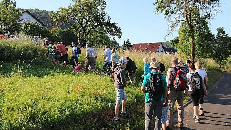 "Ich schätze die Anzahl der Teilnehmer auf 60", meinte Feldgeschworenen-Obmann Martin Reuter beim Start am frühen Morgen an der Eschenbachhalle. Er übernahm die Führung und lieferte viele Informationen zur Ortsgeschichte. Nach dem rund achtstündigen Marsch korrigierte Reuter: "Es waren zeitweise fast doppelt so viele Teilnehmer." Denn unterwegs kamen viele neue Wanderer hinzu, stellenweise klinkten sich auch welche aus.