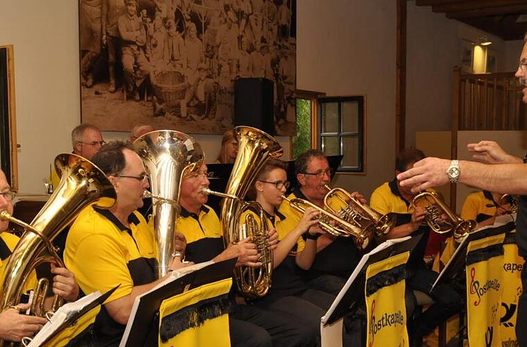 Postkapelle und die Rhöner Rucksackmusikanten spielen auf.