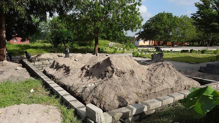 Wie jedes Mal müssen wieder zahlreiche Reparaturen durchgeführt werden. Aus der Wasserleitung bei der Küche läuft  kein Wasser mehr. Wieder einmal war die Leitung durchgehackt und mit Fahrradschlauch geflickt worden. Für diese Jahreszeit ungewöhnlich ergiebige Regenfälle und Starkgewitter sorgen für Überschwemmungen. Abflussgräben werden gezogen, damit das Wasser in die Felder und nicht in den Wohnbereich läuft. Eine Dachrinne hängt davon und an einem Klassenzimmer staut sich das Wasser, sodass die Wand durchnässt.