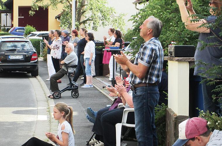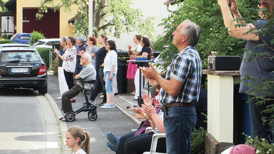 Das abschließende Stück ist der "Frankenliedmarsch", das die Zuhörer aus der Weinbergstraße fröhlich mitsingen. Sie honorierten die Präsentation mit einem kräftigen Applaus, die Musiker dankten mit einer Zugabe für die Unterstützung.
