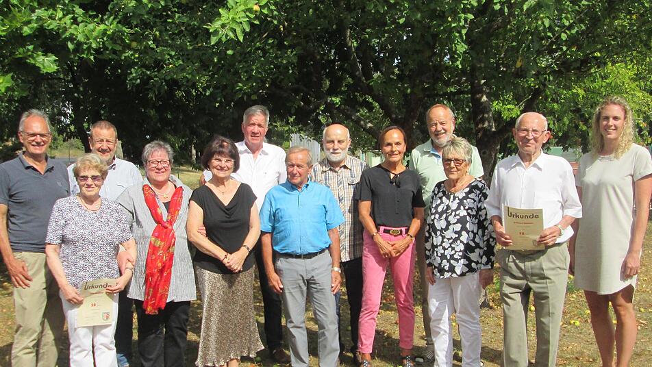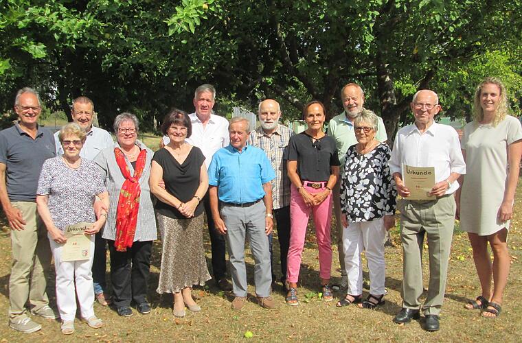 Willekes Dank galt eingangs Christa Hannawacker und ihrem Helferteam für die Bewirtung mit Kaffee und Kuchen. Danach zeichnet die Vorstandscrew die "Veteranen" aus unter denen Doris Tobisch mit 65 Mitgliedsjahren die Treueste war. Die Dankesurkunde und ein Weinpräsent erhielten ebenso Annemirl Albrecht für 60 Jahre und Joachim Wloka, Ulrike Scheblein, Wolfgang Baier und Ulrike Bach für 55 Jahre.