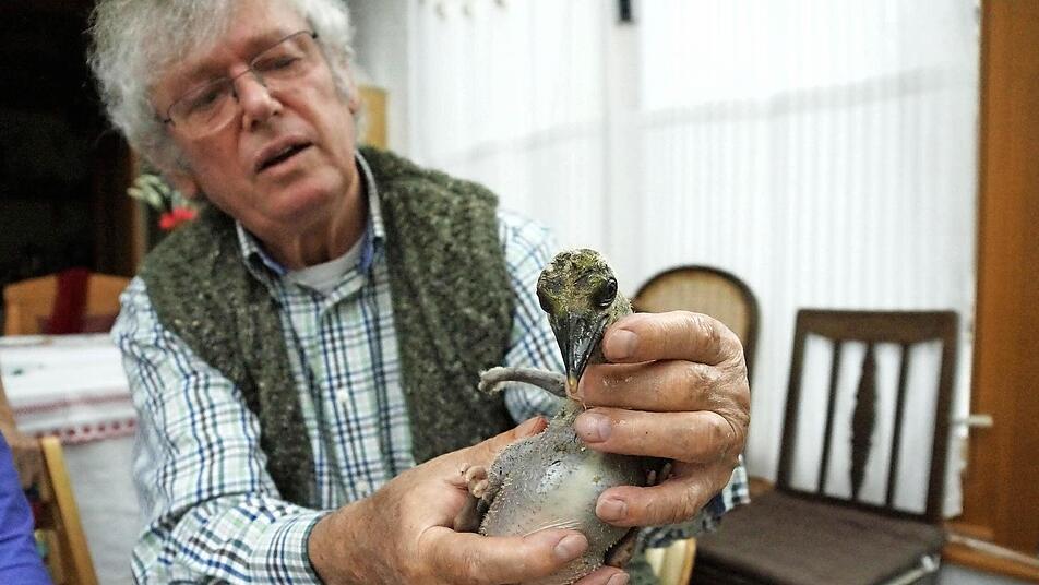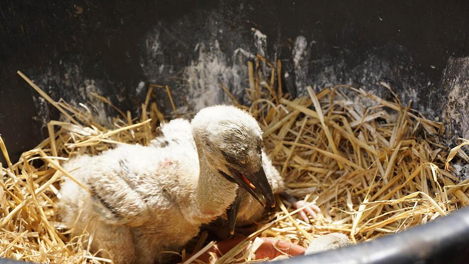 Die drei Hammelburger Storchenküken machen nun schon einen viel besseren Eindruck als am Freitag: Das Daunengefieder ist flauschig und die Bäuche sind rund. Zu verdanken ist das Jochen Willecke.