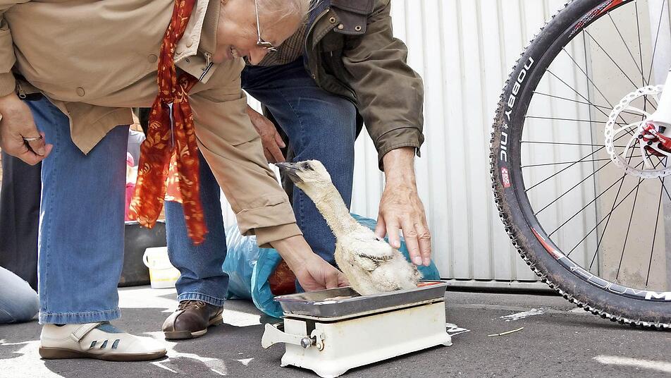 Das hat Michael Zimmermann, "der Storchenvater von Erlangen", empfohlen. Mit ihm spricht Jochen Willecke alle Aktionen ab. Zimmermann muss wegen des extrem regnerischen Wetters 15 Störche zu Hause aufpäppeln.