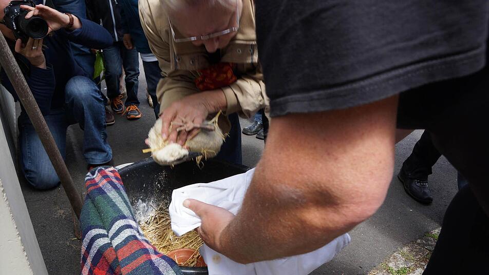 Zwei Tage lang hat er die Jungstörche zu Hause aufgepäppelt. "Heute waren sie schon um 5 Uhr wach", sagte seine Frau Hannelore. Wenn die Tiere Hunger haben, fangen sie an zu klappern. Dann legen sie sich wieder hin, wie Jochen Willecke erklärte. Neben zahlreichen Hühnerküken hatten die Störche über die beiden Tage so auch einen ganzen Karpfen vertilgt.