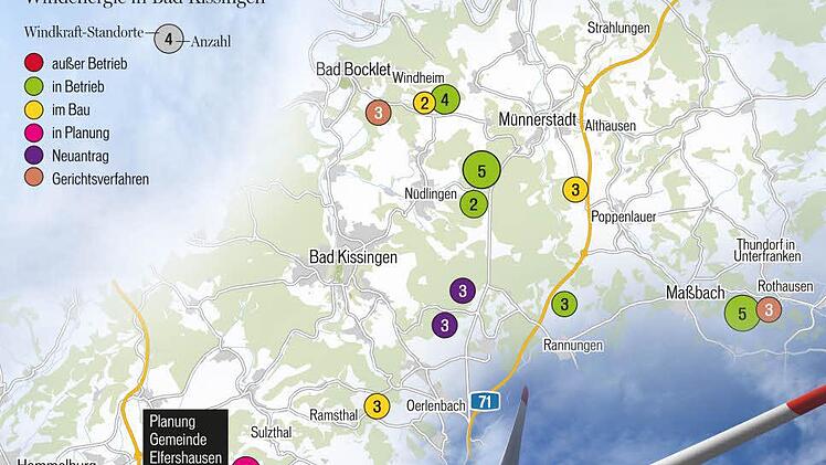 17 der 37 neuen Windräder sollen in Unterfranken entstehen: Alleine zehn im Landkreis Rhön-Grabfeld, sechs im Landkreis Bad Kissingen. Aktuell sind zwischen Gauaschach und Rothhausen 22 Windräder mit einer Nennleistung von insgesamt 50 300 Kilowatt in Betrieb, elf weitere mit einer Nennleistung von 31 800 Kilowatt werden gerade gebaut. "Was jetzt gebaut und genehmigt wird, das sind alles Altfälle", betont Fell.
