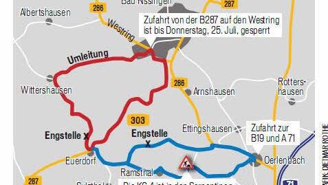 Die Einmündung der B287 ist zwar bereits fertig, die Autofahrer müssen sich aber wegen Baumfällarbeiten noch zwei Tage gedulden. Zum Rakoczy-Fest ist Bad Kissingen auf alle Fälle von Euerdorf her wieder erreichbar.