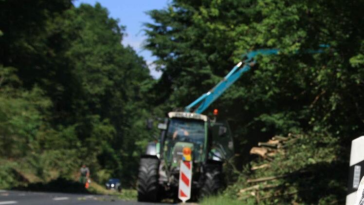 Dass die Baumfällarbeiten die Öffnung der Straße noch zwei Tage verzögern, verteidigt Edgar Thomas, der Chef der ausführenden Firma: "Wir haben jeden möglichen Tag genutzt", verweist er auf die Einschränkungen. Zunächst hätten unvernünftige Autofahrer für Probleme gesorgt: "Zum Teil hatten wir den Fällkeil im Baum, haben die Säge angesetzt, und unten stand plötzlich ein Auto", berichtet Thomas.