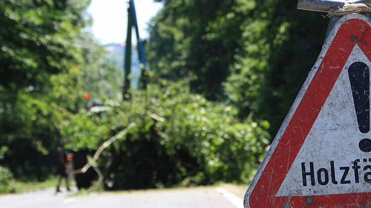 Ausgerechnet kurz nach dem Fallen von zwei großen Eichen ist Franz-Peter Potratzki gestern an die Baustelle gekommen. "Der Verkehr zum Golfplatz wird über die Bismarckstraße umgeleitet", hatte er die Beschilderung an der Garitzer Kreuzung so gedeutet, dass er auch bis Euerdorf durchkommt. Statt mindestens 20 Minuten zu warten, bis die Bäume weggeräumt werden, fuhr er dann doch tüber Garitz und Wittershausen.