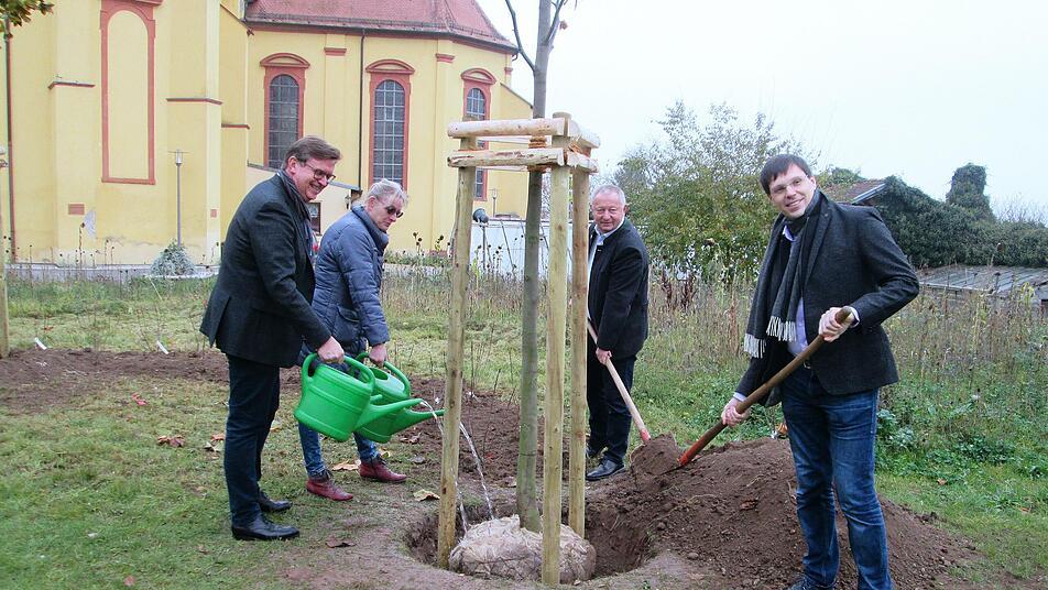 Der Landkreis und die Heiligenfeld Gruppe gingen mit nachahmenswertem Beispiel voran. Insgesamt 60 Bäume und Sträucher wurden im ehemaligen Gemüse- und Obstgarten der Franziskaner-Mönche in der Bayerischen Musikakademie Hammelburg gepflanzt. Hintergrund der Aktion war der 60. Geburtstag von Landrat Thomas Bold, zu dem ihm die Klinik-Gruppe aus Bad Kissingen symbolisch die Bäume und Sträucher schenkte, die jetzt in die Erde gegraben wurden.
