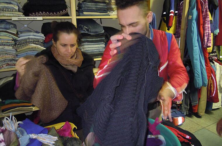 Viele Flüchtlinge kommen in den Laden der Caritas, wo sie sich eine Grundausstattung zulegen.