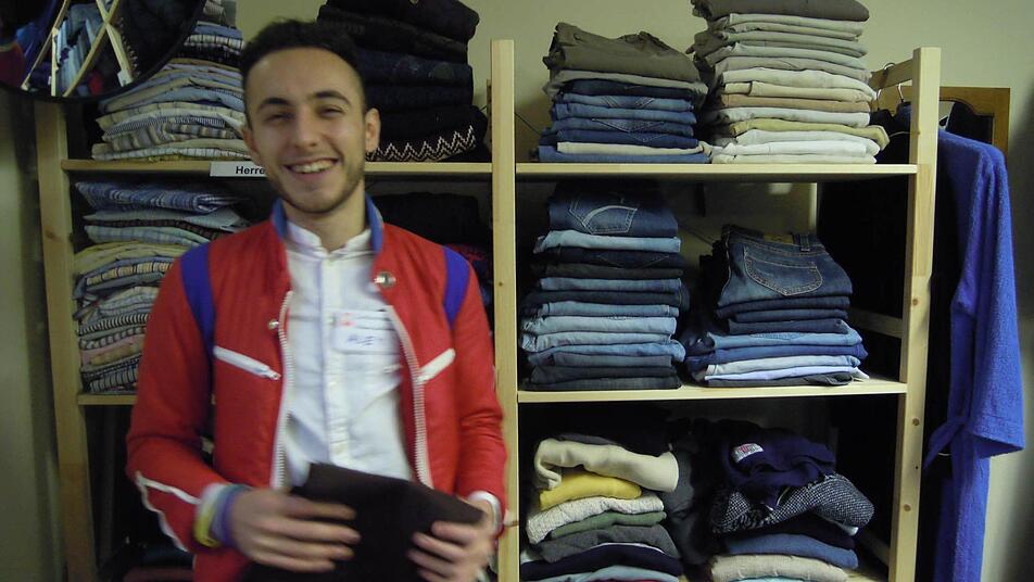 Im Caritas-Kramlädchen in der Kirchgasse arbeiten zahlreiche ehrenamtliche Helfer mit und verkaufen Kleidung und Haushaltsgegenstände. Auch ein junger Flüchtling aus Syrien packt tatkräftig mit an. Er ist Vermittler zwischen den Sprachen und versucht sich ein Stück Normalität in seinen Alltag zu holen.