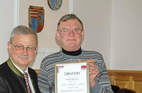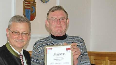 Für die 40 Jahre Dienstzeit beim Markt Oberthulba bekam Halbig eine Urkunde, die von der bayerischen Staatsministerin für Arbeit und Sozialordnung, Christine Haderthauer, unterzeichnet ist. Eine weitere Urkunde gab es vom Markt Oberthulba selbst. Die Mitarbeiter der Gemeinde dankten ihrem Kollegen mit einem besonders wertvoll hergerichteten Arbeitsgerät.