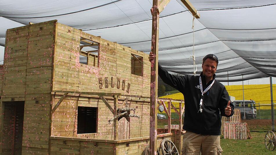 Der Freizeitpark im Gewerbegebiet Arnshausen/Reiterswiesen nähert sich der Fertigstellung. Eröffnung ist am 30. Mai. Das Paintball-Feld ist schon in Betrieb und hat die "Feuertaufe" bestanden.