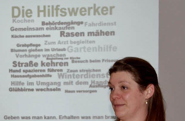 keinesfalls um Dienstleistungen, für deren Erledigung man Handwerker oder andere professionelle Arbeitskräfte beauftragen könnte, betont die Projektleiterin. "Es sind doch oft die kleinen Dinge, die den Senioren das Leben manchmal schwer machen", erklärte sie ihren Zuhörern den Leitgedanken des Projekts. "Schon beim Bettenmachen fängt es doch an." Oder: Wer fährt künftig den Müll zum Wertstoffhof, wenn der Ehemann gestorben ist? Wer erntet die