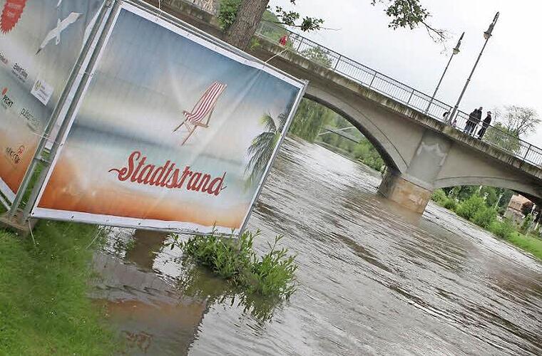 Das derzeitige kleine Hochwasser wirft eigentlich keine Probleme auf, "spült" aber die Frage nach oben, was mit dem Stadtstrand passiert, wenn die Saale über die Ufer tritt. Für eine mögliche schnelle Räumung des Areals gibt es einen Einsatzplan.