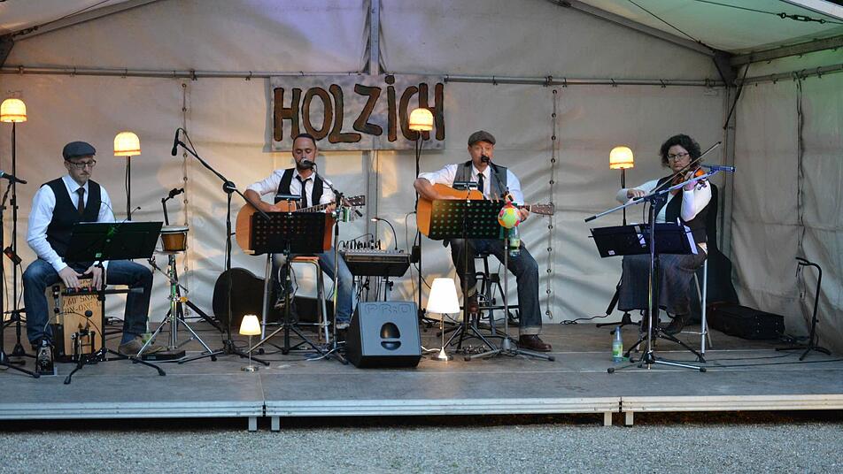 Der Schlosspark in Aschach ist ein lauschiges Plätzchen. Gerade im Sommer ist dieser Ort wie geschaffen für Open-Air-Konzerte. Und am Freitag war es wieder einmal soweit: die Band "Holzich" trat dort auf. Mit ihrer erdigen Akustikmusik boten die vier Band-Mitglieder Daniel Rüttiger, Michael Voll, Andrea Oehme und Benjamin Ballin dem Publikum einen gelungenen Sommerabend.