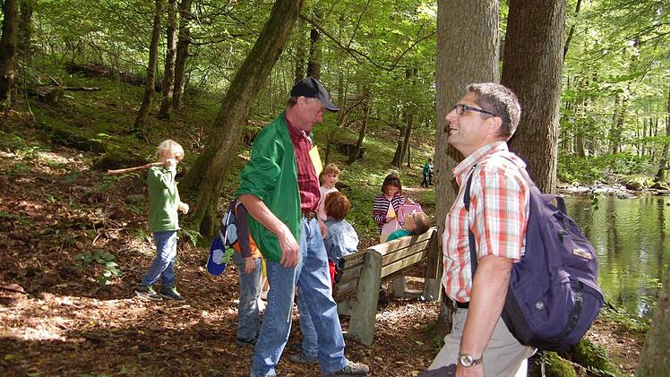 Er führte eine der drei Gruppen durch das steinige Gelände entlang der Thulba. Um die beiden anderen Gruppen kümmerten sich der Oberthulbaer Revierleiter Tobias Wallrapp und der Forstwirt des Gemeindewaldes, Herbert Halbig.