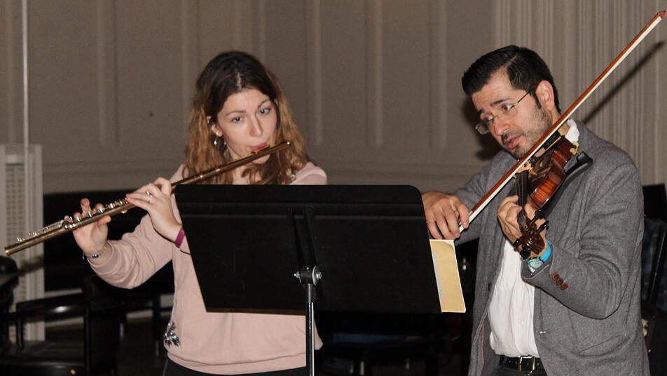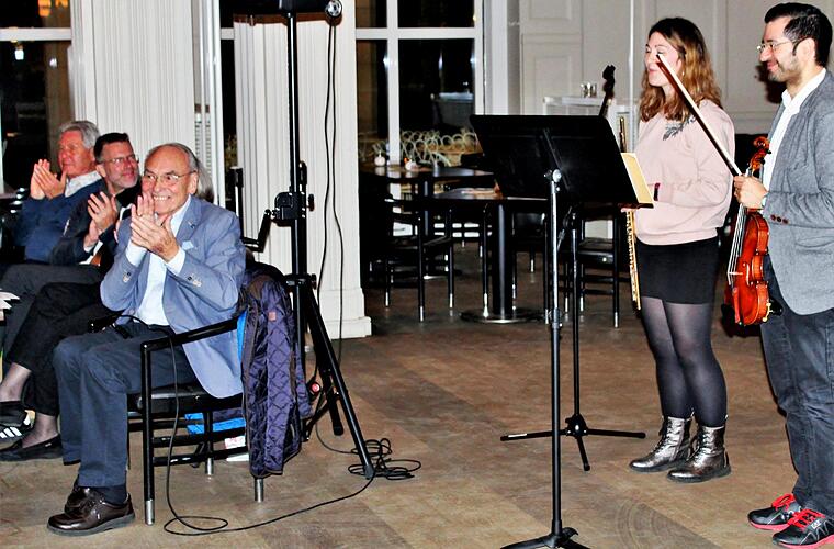 Die Violine Thoelkes und ihre Querflöte lassen Mozart durch den Saal schweben, bevor Kurt Rieder die Planungen für 2020 umreißt. "Die stark gestiegenen Besucherzahlen, selbst jetzt in der Nachsaison sind Ausdruck des gestiegenen Niveaus des Orchesters", meint Rieder und verweist besonders auf die Abend- und Sonderkonzerte und zeigt Bilder vom Herbstkonzert mit Sopranistin Anja Gutgesell.