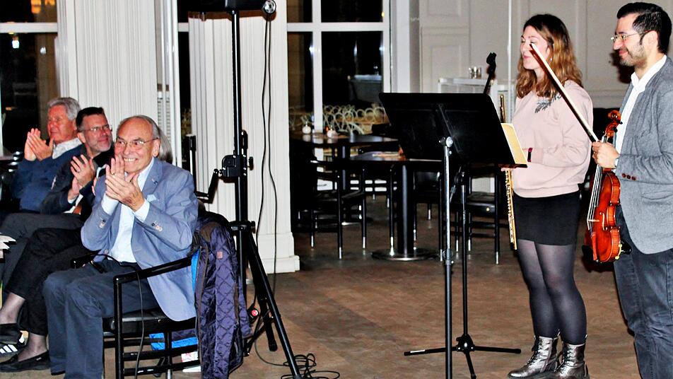 Bevor man den Abend bei Gesprächen am Tisch bei einem Frankenschoppen ausklingen lässt, zaubert die Querflöte der Lisa Oefler mit dem ersten Satz der lupenrein gespielten Partita für Soloflöte von Johann Sebastian Bach ein Lächeln auf die Mienen der Mitglieder des Fördervereins.