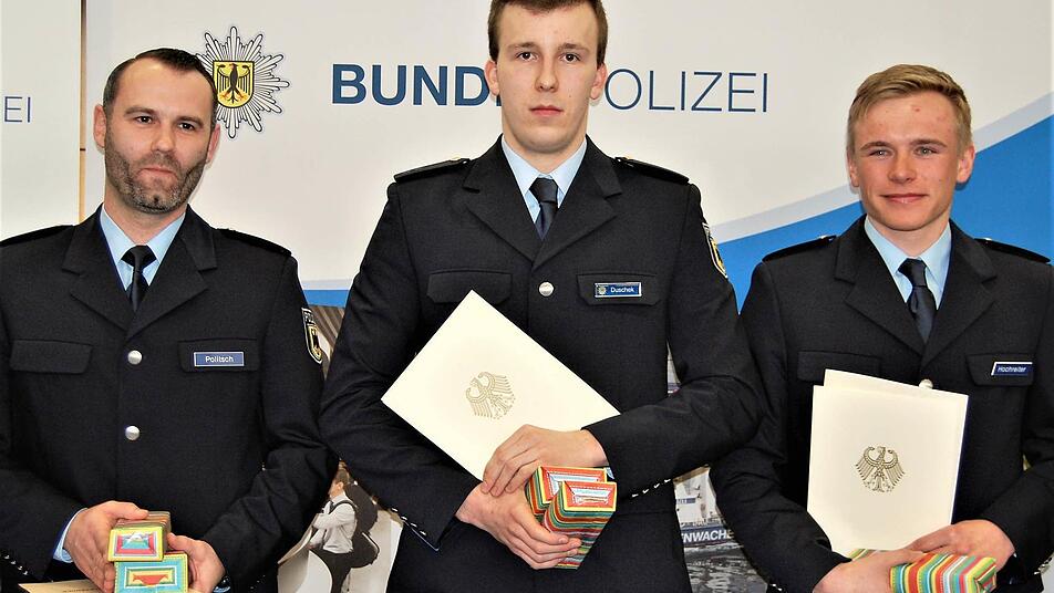Im September 2014 waren die 40 Polizeimeisteranwärterinnen und 103 Polizeimeisteranwärter ins Aus- und Fortbildungszentrum der Bundespolizei in Oerlenbach eingerückt. Zweieinhalb Jahre später wurde ihnen jetzt nach bestandener Prüfung die Beförderungsurkunde zur Aufnahme als Beamter auf Probezeit ausgehändigt und alle in den aktiven Dienst verabschiedet. Viel Zeit zum Feiern blieb nicht: Schon am Montag mussten sich die Absolventen in ihren neuen Dienststellen zum Einsatz melden - die meisten in Bayern und Baden-Württemberg, manche auch am Frankfurter Flughafen.
