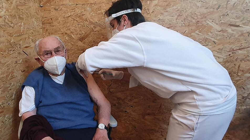 Der Senior aus dem Hammelburger Stadtteil Feuerthal ist der erste Landkreis-Bürger über 80, der im Tattersall geimpft wurde. Damit ist das Impfzentrum nun offiziell in Betrieb gegangen - bislang waren hier an einzelnen Tagen nur Mitarbeiter der Rettungsdienste und ambulanter Pflegedienste geimpft worden.
