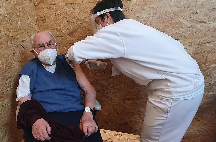 Ein kurzer Pieks - und dann ist es auch schon überstanden: "Weh getan hat das nicht", sagt Arthur Schultheis und fügt hinzu: "Da habe ich schon weit Schlimmeres mitgemacht." Sein Sohn Kurt, der ihn begleitet, ist froh, dass sein 96-jähriger Vater nun endlich gegen Corona geimpft wurde. "Er war ein bisschen nervös, aber wir sind alle glücklich, dass es jetzt geklappt hat."