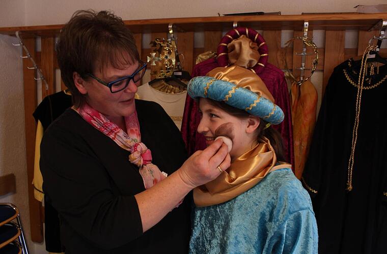Nicole Götz drückt den Schwamm in die Farbdose. Kurz darauf ist die Wange von Klara Weidmann braun gefärbt. Auf dem Kopf trägt die Zehnjährige einen Turban. Königlich sollen sie und die anderen Aschacher Ministranten aussehen. Am Montag haben sie ihren großen Auftritt als Sternsinger.