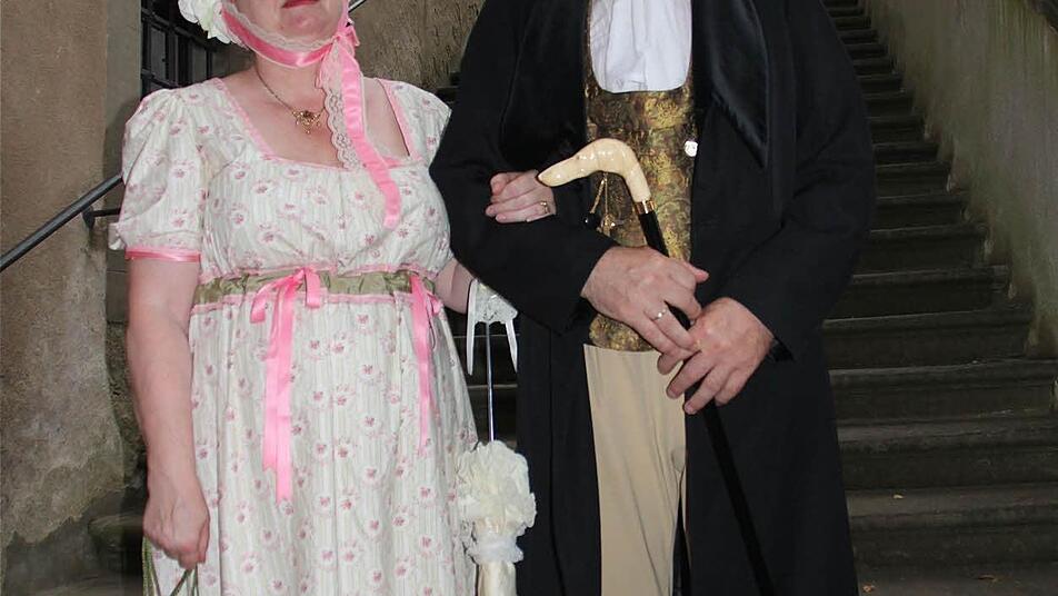 "Ich finde das Reisen in meinem Kleid aus der napoleonischen Empirezeit angenehmer als den Reifrock des Rokoko", erzählt die Berlinerin Birgit Radehose. "Ich trinke gerne bayerisches Bier und schaue mir seit Jahren das Bad Kissinger Rakoczy-Fest an", schwärmt sie. Das jährliche Ereignis besucht sie schon zum dritten Mal. Freilich stets in Begleitung ihres Ehemannes Thomas Radehose.