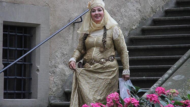 Als sagenhafte Figur "Krimhild" aus dem frühen Hochmittelalter kam Angelina Riedel ebenfalls aus Berlin in die Region. Sie freut sich vor allem auf den Rakoczy-Ball sowie auf das Promenieren in der Kurstadt und auf den Festzug. Alle drei Gäste zählen sich mittlerweile zur Gemeinschaft der treuen Stammgäste auf dem Bad Kissinger Rakoczy-Fest.