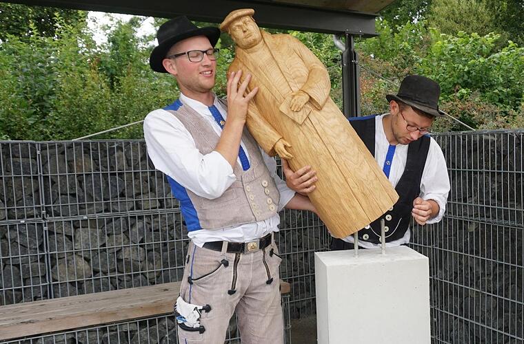 Der junge Holzbildhauer Johannes Brennsteiner hat auf der Walz in Bischofsheim Station gemacht und prompt einen Auftrag erhalten: Eine Luther-Figur.
