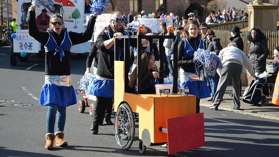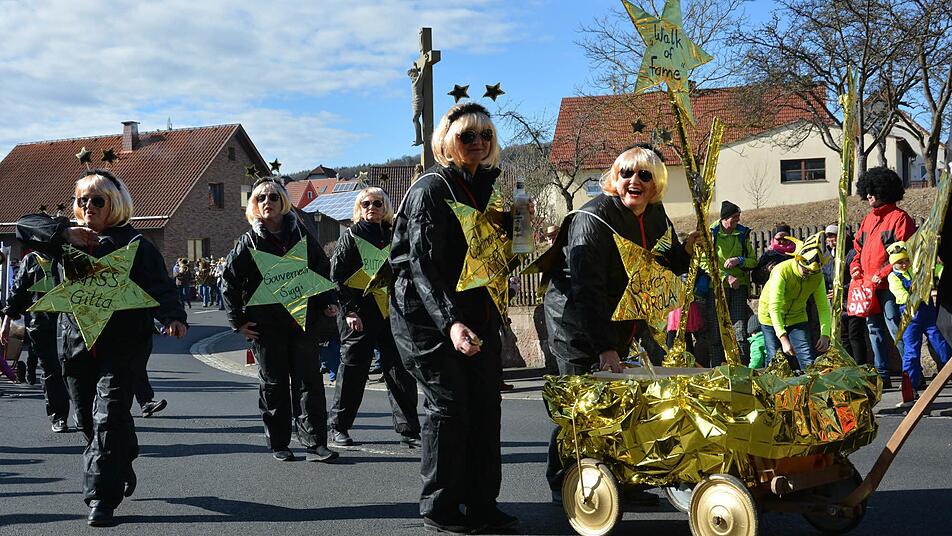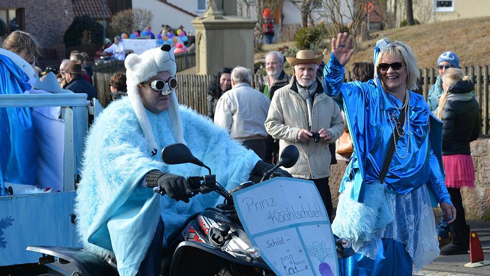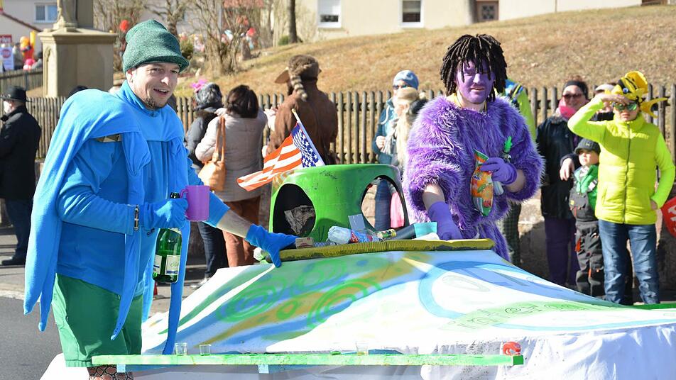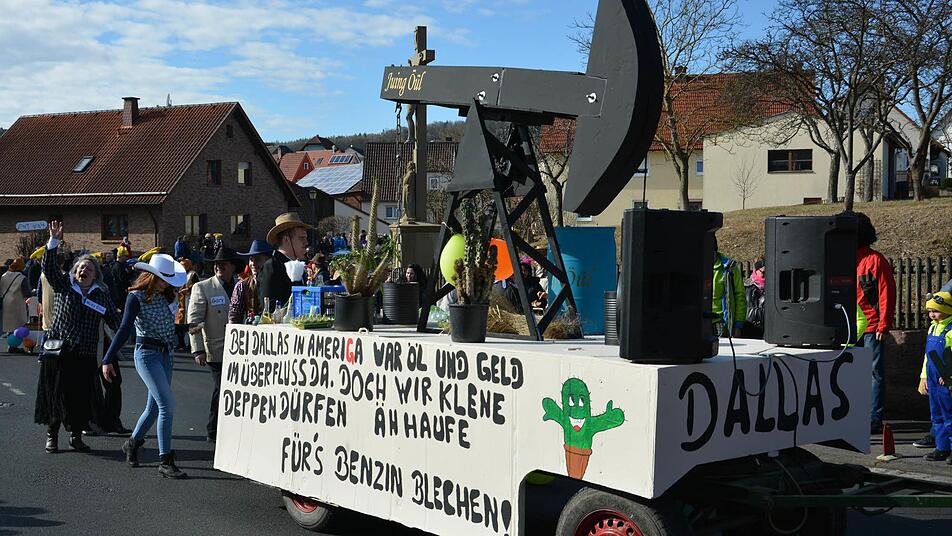 Eine Reise in die Vergangenheit wurde geboten, als der "Rhöner Clan" die Fernsehserie Dallas nachstellte. Das Prinzenpaar aus Lauter und Katzenbach vom "Eisbarch" war natürlich auch mit von der Partie und grüßte huldvoll von seinem phantasievoll geschmückten Wagen herab. Ein Hingucker war die "Intergalaktische Space Police", die in ihrem Raumschiff einen Außerirdischen transportierte. Auch die Mauer zu Mexiko wurde thematisiert sowie ein Indianerlager auf einem der Wagen stilecht nachgebaut. Man nahm ebenso die örtliche Politik aufs Korn.