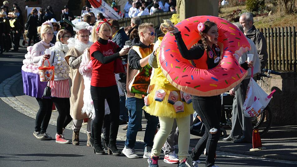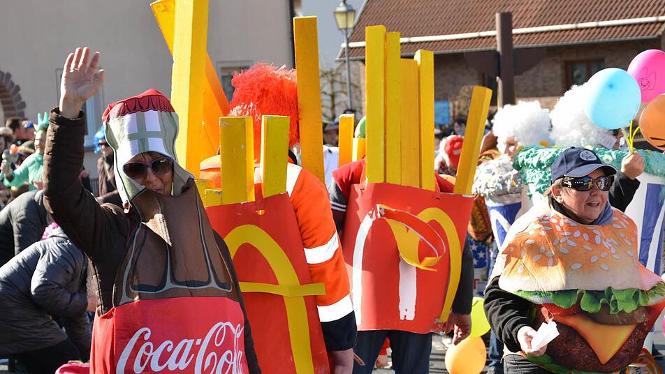 Der "Große Trail" schlängelte sich von Katzenbach bis zum Feuerwehrhaus nach Lauter. Dabei machte man sich auch über die amerikanischen Klischees lustig, das Thema "Fast Food" wurde von mehreren Gruppen zur Vorlage genommen. Als Burger, Pommesschachteln, Cookies und Coladosen verkleidet sorgten sie für viel gute Laune. Natürlich durfte auch das Thema "Hollywood" nicht fehlen, wobei ein riesiger Oscar vom BSC den Zug begleitete. Die Katzenbacher Jugend hatte sich dem Thema "NSA" angenommen und sich agententypisch mit Schlapphut und Mantel bekleidet. Eine neue Raketenmission wurde ebenso angeregt: "Trump to the moon" lautete hier die Devise und die Gruppe zeigte damit, wo sie den Präsidenten gerne sähe. Fehlen durfte auch Livemusik nicht, die vom Musikverein Lauter und Musikverein Katzenbach gespielt wurde. Selbstverständlich hatten sich auch die Musikanten stilecht verkleidet.
