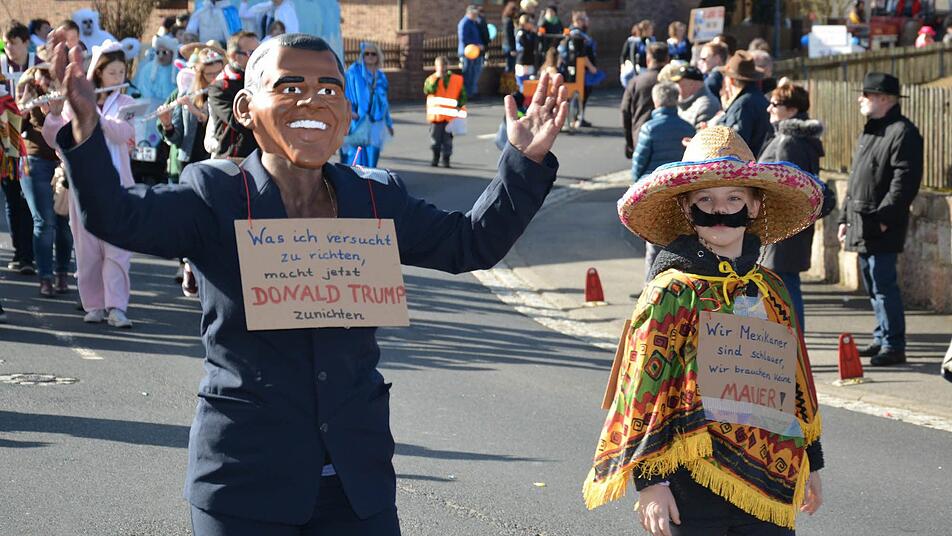 Ein ganz besonderes Thema hatten sich die Veranstalter des 5. Katzenbacher und Lauterer Faschingszugs ausgedacht. Unter dem Motto "Ameriga" wurden den zahlreichen Schaulustigen eine närrische Reise ins Land der unbegrenzten Möglichkeiten geboten. Vom Wilden Westen bis hin zu Donald Trump wurde der "American Way of Life" dargestellt und dabei kräftig aufs Korn genommen. Besonders der frischgebackene Präsident bekam dabei sein Fett weg, sehr zur Freude der Zuschauer.