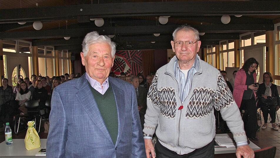 Geschichte zum Anfassen gab es in der Aula des Hammelburger Frobenius- Gymnasiums. Die 89- und 90-jährigen Zeitzeugen Arnold Samuels und Alfred Stühler berichteten von ihrer Vertreibung aus Hammelburg in ihrer Jugend und beantworteten Fragen der Schüler.
