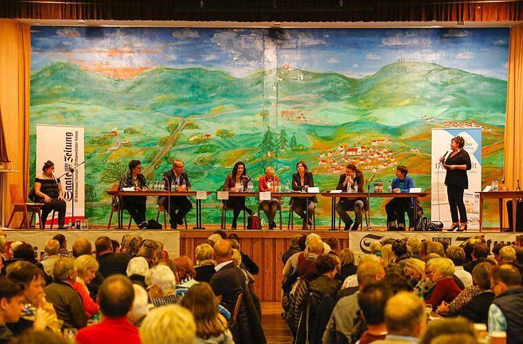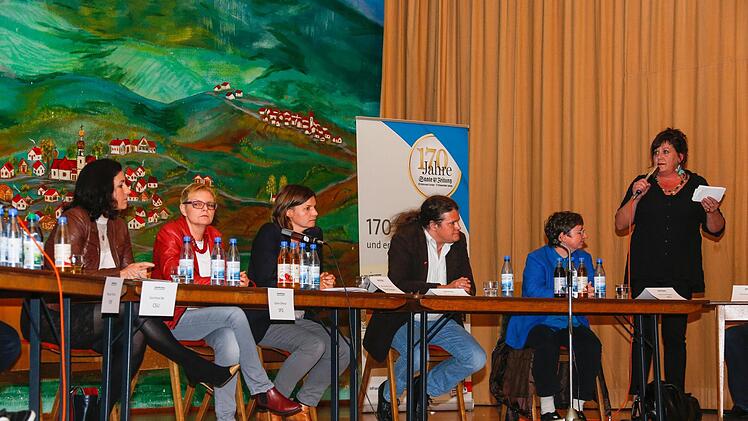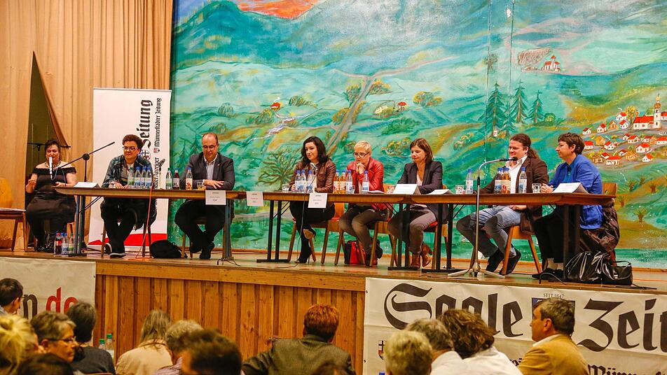 "Wir leben in gefährlichen Zeiten", schloss Kabarettistin Lizzy Aumeier das Thema AfD und den Abend mit dem Appell an die Zuhörer ab, nicht nur wählen zu gehen, sondern sich auch sonst für demokratische Grundrechte einzusetzen. Wie schwierig das selbst für Bundestagsabgeordnete ist, zeigt die relative Ratlosigkeit im Umgang mit dem US-Präsidenten Donald Trump. "Das Wichtigste ist, dass wir im Gespräch bleiben", gab die Parlamentarische Staatssekretärin Dorothee Bär als Devise aus. Gleichzeitig nahm sie die Energiewende für die CSU in Beschlag: Bayern habe das erste Umweltministerium weltweit eingerichtet, berichtete sie. Auch sonst verwies Bär meist auf Erfolge wie das gute bayerische Schulsystem. "Bildung darf nicht vom Wohnort und dem Einkommen der Eltern abhängen", stellte dem Dittmar gegenüber. Die Ärztin, die sich selbst von der Hauptschule zum Studium durchkämpfte, forderte bessere Unterstützung vom freien Kindergartenplatz bis zum kostenfreien Erststudium. Gleichwertige Lebensbedingungen auch auf dem Land lautete eine wiederholte Forderung von ÖDP-Grau Reinhard, die sich von der Bildung bis zur Gesundheitsversorgung durchzog.