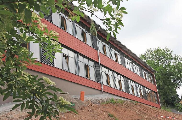 Nach Abriss des Altbautraktes öffnet sich der Blick vom Schulhof aus bergab auf das Sinntal. "Eine Sanierung dieses Altbaues wäre teurer als der Teilneubau gekommen", ist sich Architekt Stefan Richter sicher.