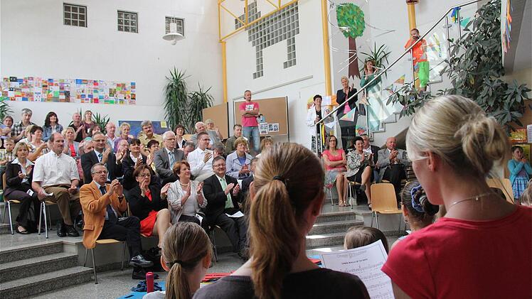 Höhe von rund 3,6 Millionen Euro, von denen der Freistaat Bayern die Hälfte fördert. "Unser Stadtrat steht voll dahinter", versicherte sie und betonte: "Die Schule ist ein wichtiges Stück Lebenszeit, also ein wertvolles Gut." Die Bauarbeiten seien ohne Unfall abgelaufen. In den Sommerferien sollen noch vier Klassenräume im Altbau saniert werden. Auch sei die Sanierung der Turnhalle in die Wege geleitet.