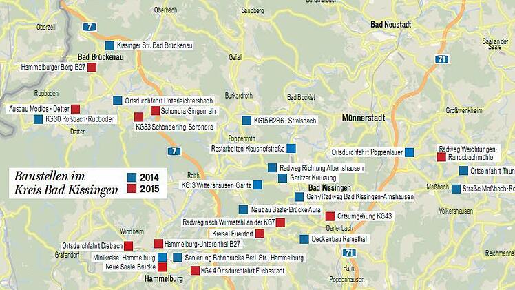 Die Ortsdurchfahrten Poppenlauer und Unterleichtersbach, die Saale-Brücke in Aura und die Bundesstraße 27 südlich von Neuwirtshaus stehen weiter auf der Agenda.