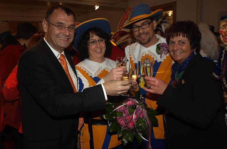 Marschmusik und Kanonenschlägen stürmten die Narren zum Rathaus. Präsidentin Silvia Reith machte nicht lange Federlesens mit Bürgermeister und Gemeinderäten: "Lasst euch nicht dreimal bitten, versucht erst gar nicht lang zu zicken. Gebt einfach Schlüssel und Kasse her, das fällt euch doch nicht schwer!" Doch so leicht ließ sich 3. Bürgermeister Robert Erhard mit seinen Getreuen nicht überwinden: "Ich glaub, ihr Narren seid nicht ganz dicht.