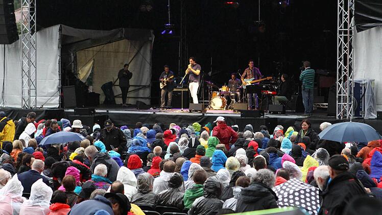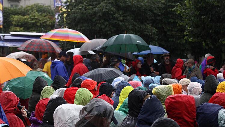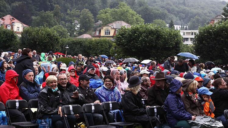 30 Liter Regen zeigte die private Messstation von Robert Hildmann, dem Leiter der Kurgärtnerei, für die Nacht von Samstag auf Sonntag an - und auch während des Tages gab es keine Stunde ohne Regenfälle. Skeptiker würden sagen: "Typisch für Brückenau: Wenn ein Open Air ansteht, wird das Wetter schlecht". Eher Optimisten waren die zahlreichen Gäste, die trotz des Regenwetters sogar noch an der Abendkasse die nicht gerade günstigen Tickets erstanden.